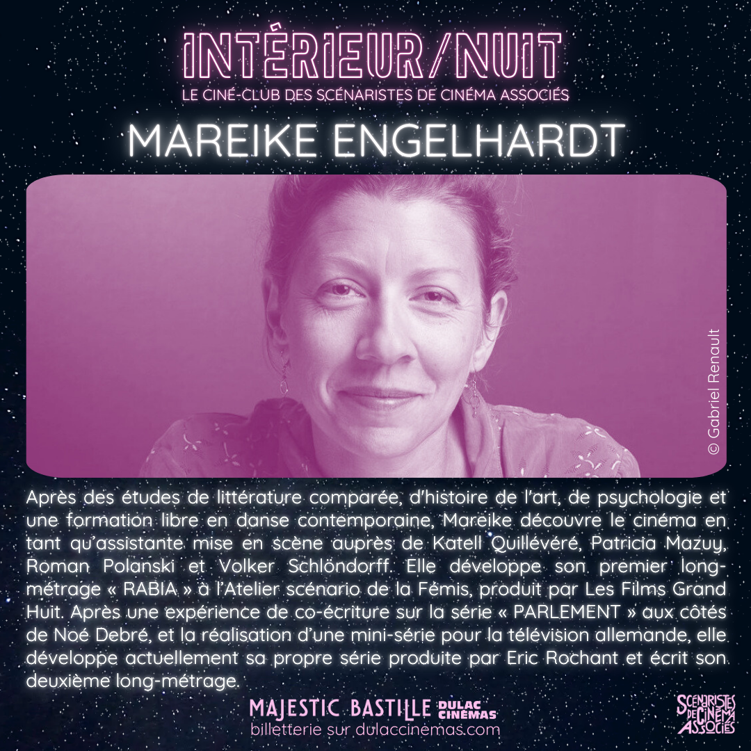 La projection a été suivie d'une rencontre avec la réalisatrice MAREIKE ENGELHARDT ainsi que le co-scénariste du film Samuel Doux. Cette séance était animée par le scénariste GUILLAUME FABRE-LUCE.